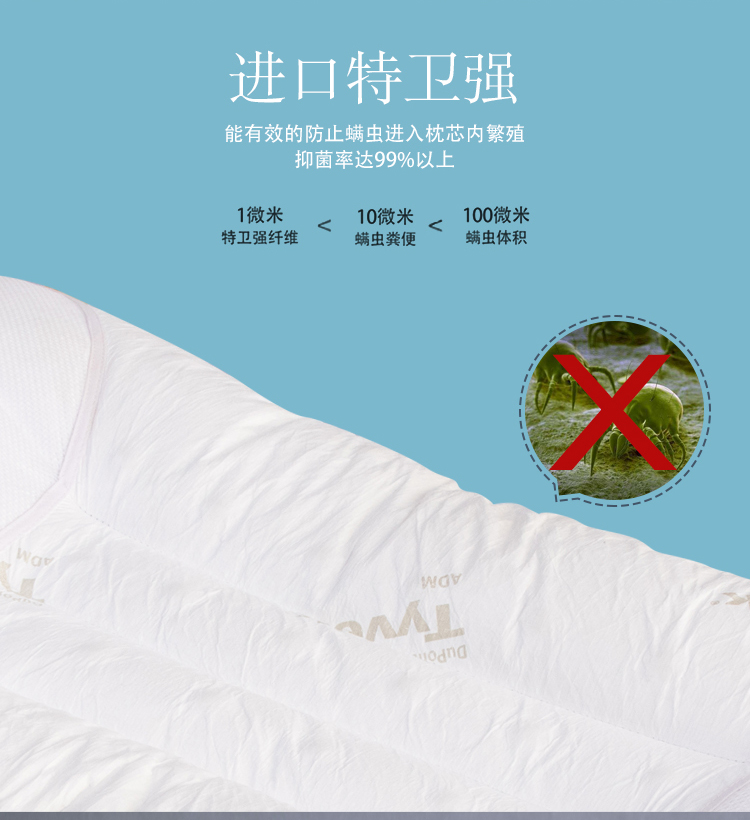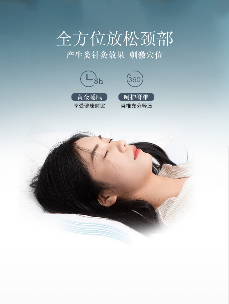 描述:专利产品,采用进口特卫强面料,透气防螨、具有99%超强的防螨效果,内部填充生物磁石,能刺激颈部穴位,呵护睡眠