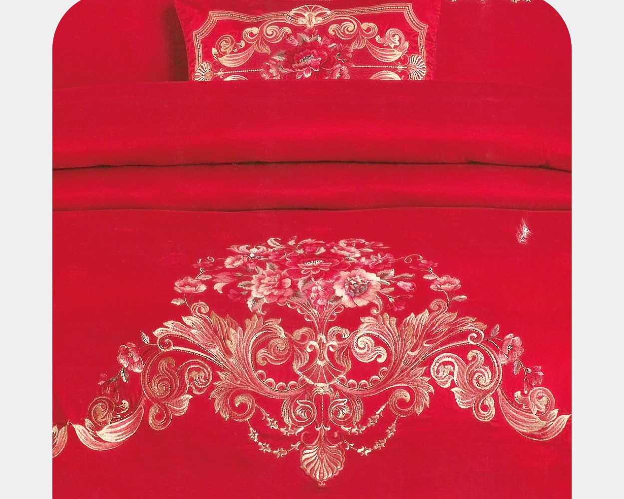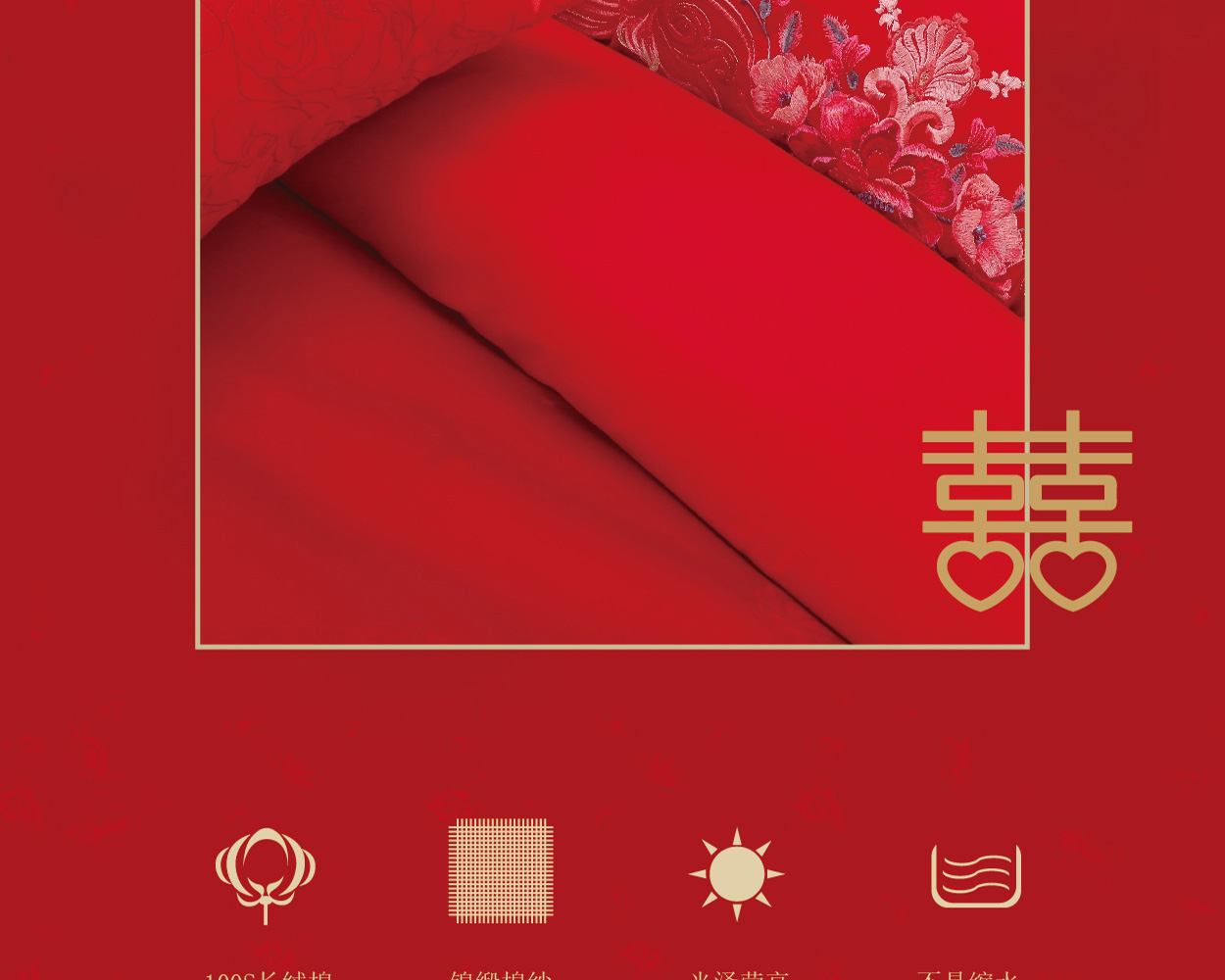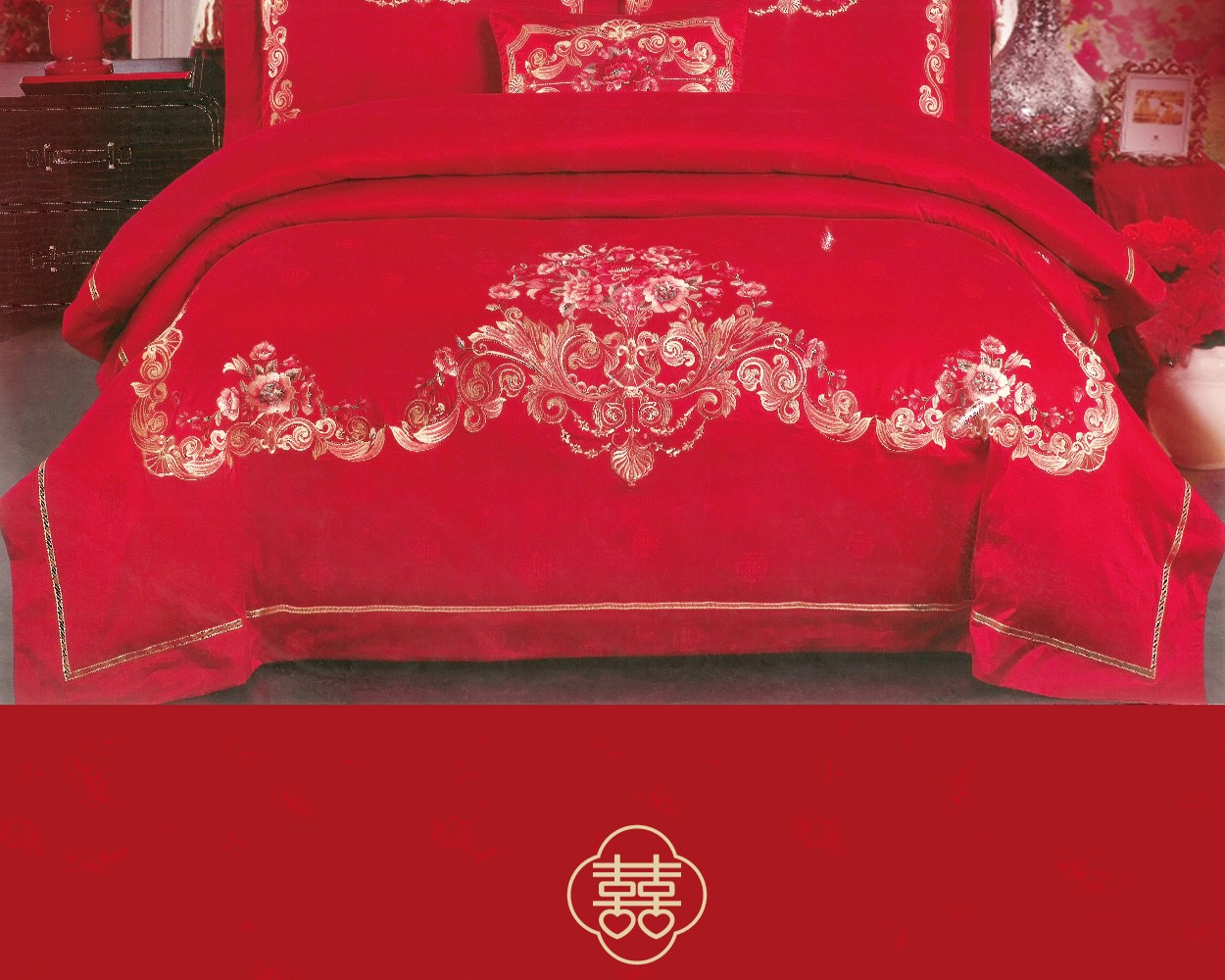 描述:大红喜庆风婚庆四件套,设计融入传统婚庆意象,大红花绣花寓意着爱情的甜美和一生的祝福,100%选用优质新疆长绒棉编织而成,比起普通全棉四件套具有缩水率低,不易掉色,更加柔软亲肤等特点,高支高密的双色立体提花工艺,加上写实的表现手法,让图案表现的更加细腻生动。