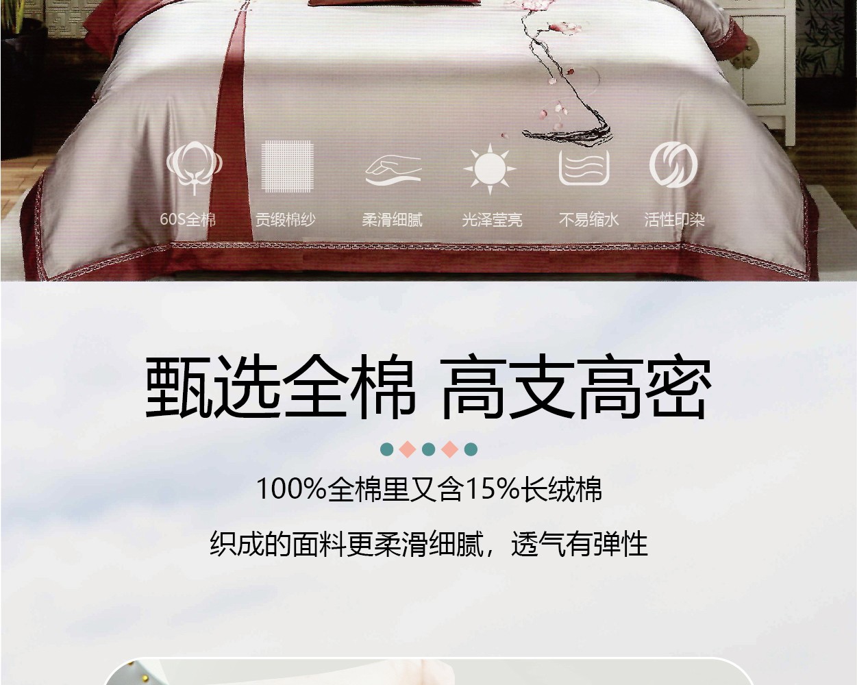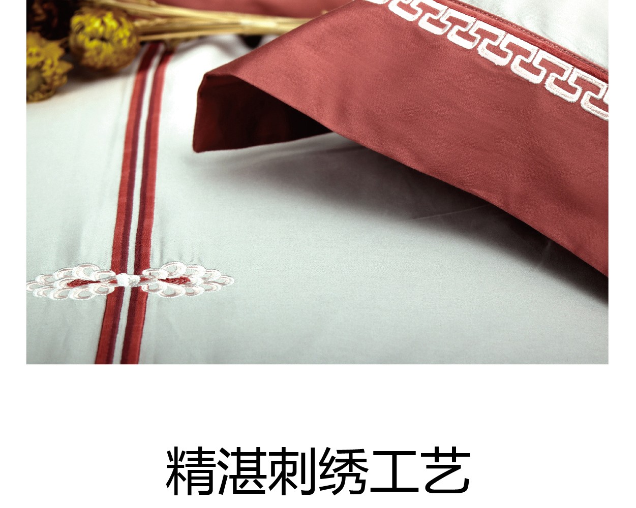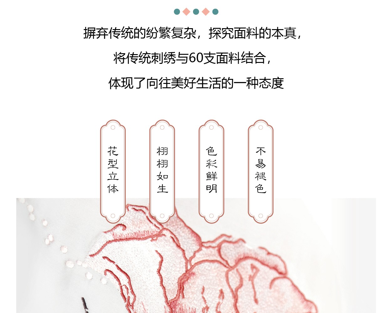 描述:新中式风格,缎纹织造,绣花温馨高雅,舒适亲肤,裸感极致体验
