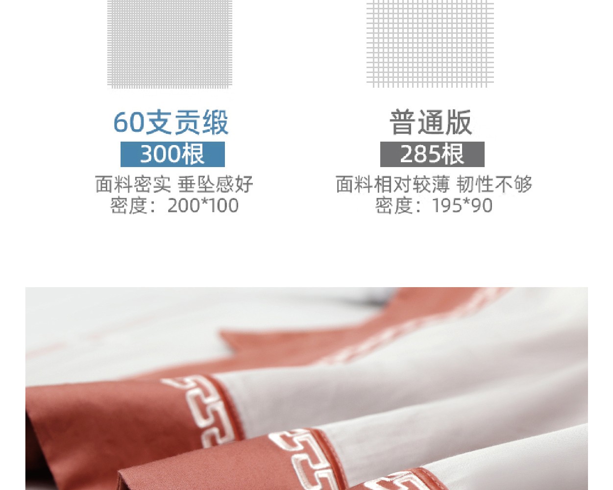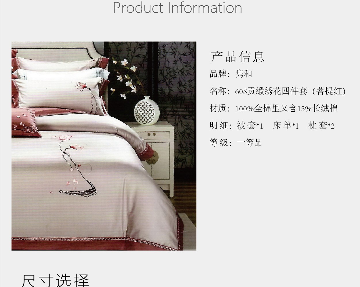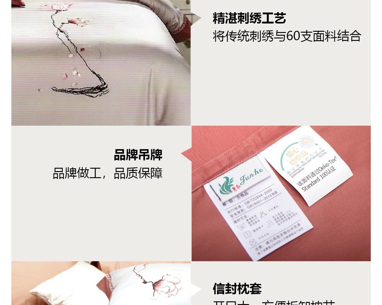 描述:新中式风格,缎纹织造,绣花温馨高雅,舒适亲肤,裸感极致体验