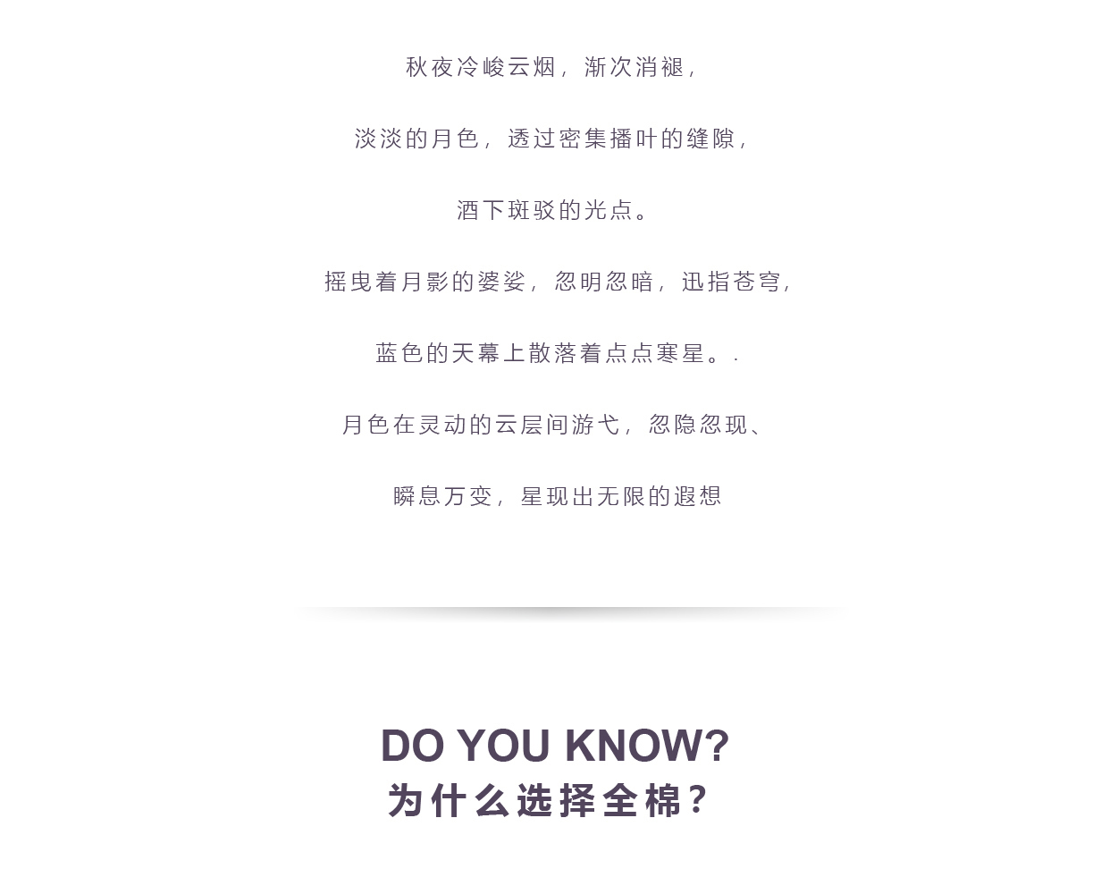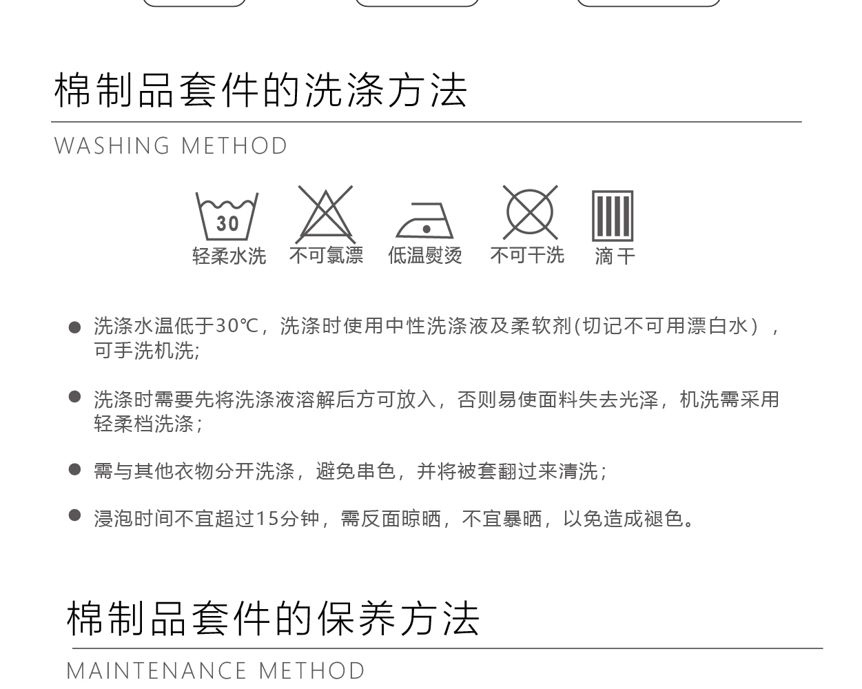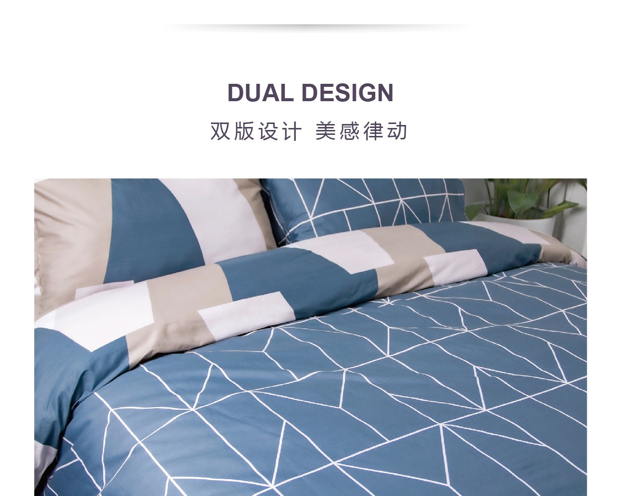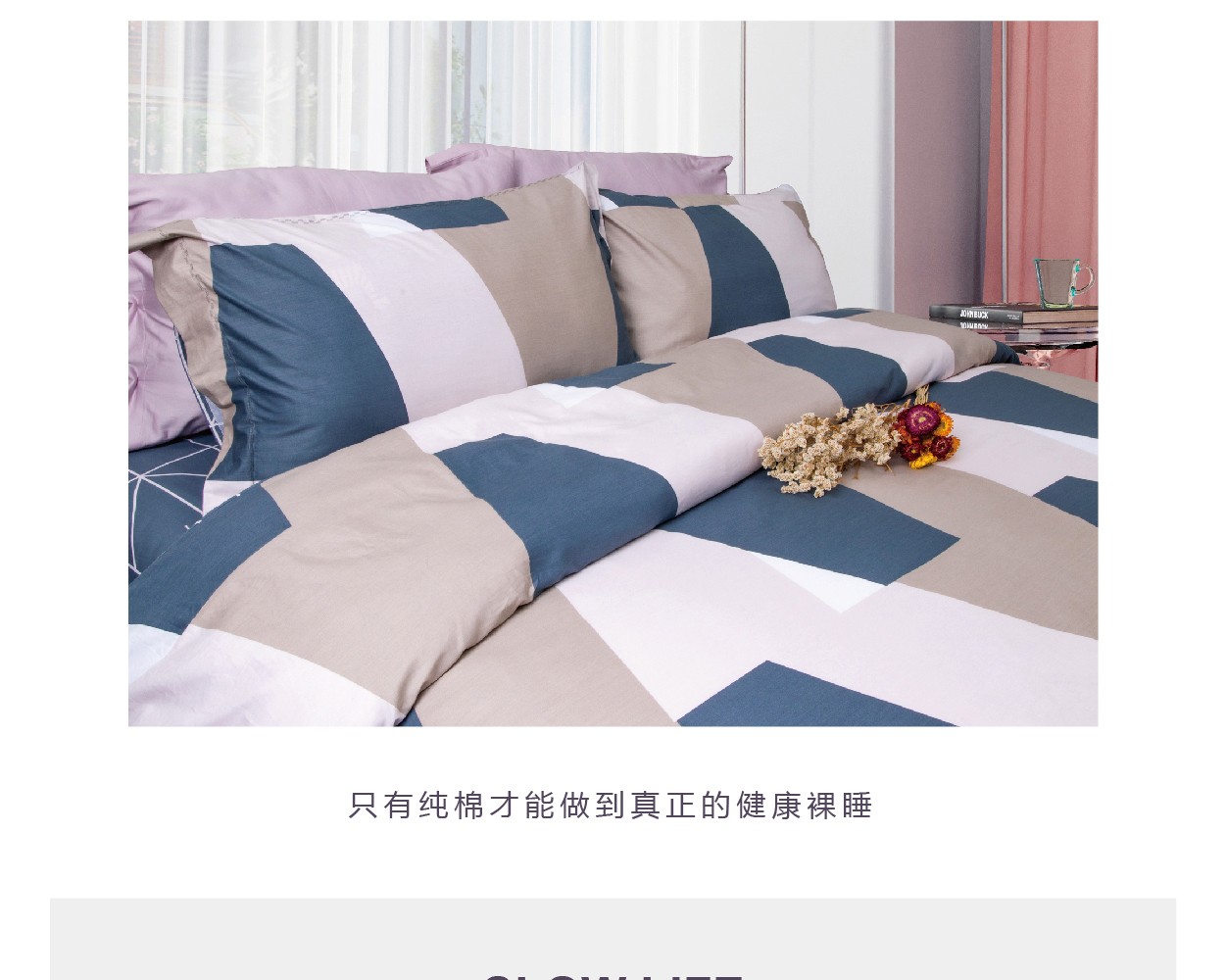 描述:100%纯棉面料、活性印花工艺、不脱色不掉色、健康环保 全工序纯棉精织,柔软舒适,吸湿透气,带给您舒适的睡眠体验。