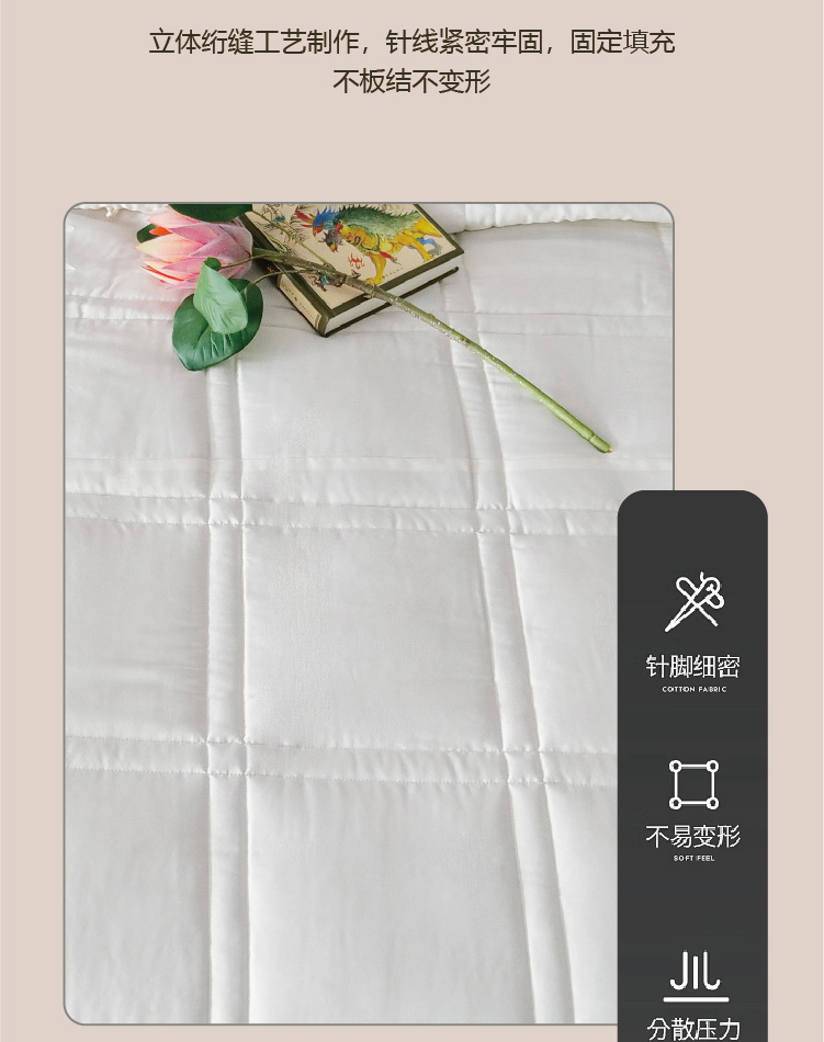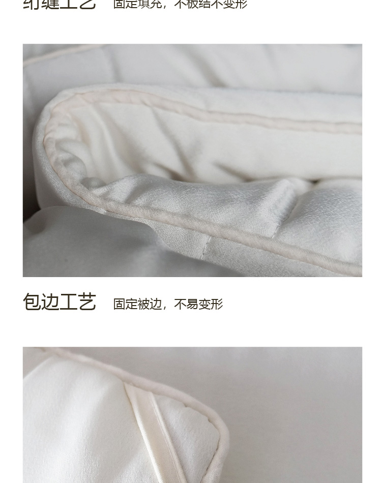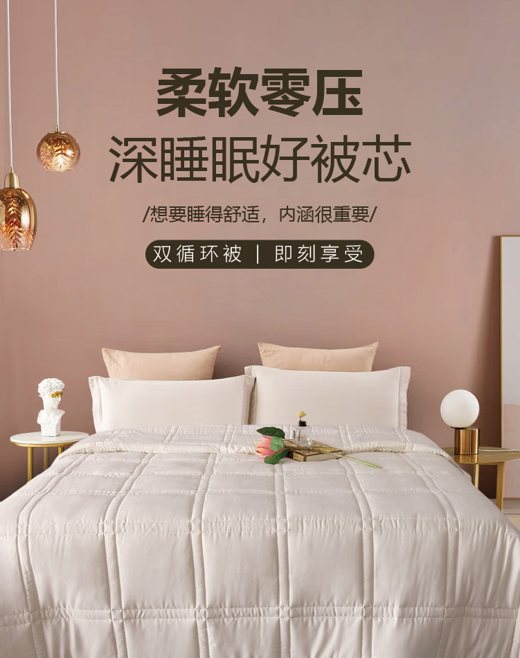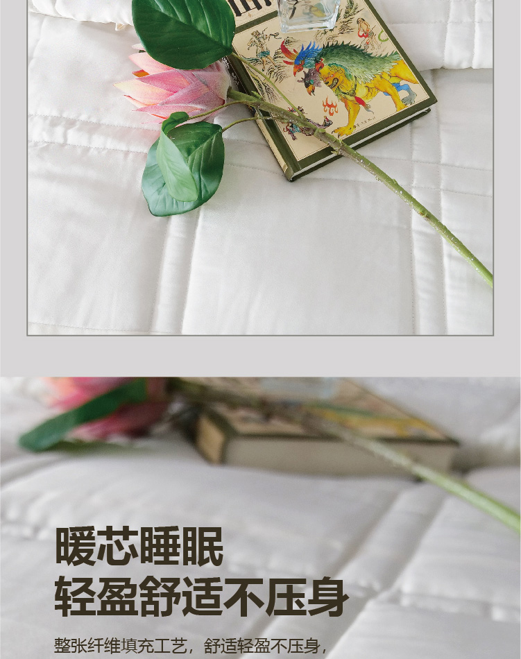 描述:采用双层设计,不压身,完美锁住温度,优质面料柔软亲肤,固定填充不板结不变形。