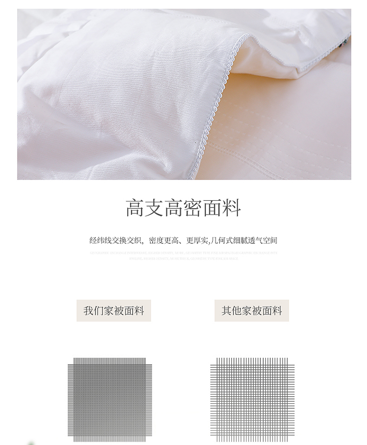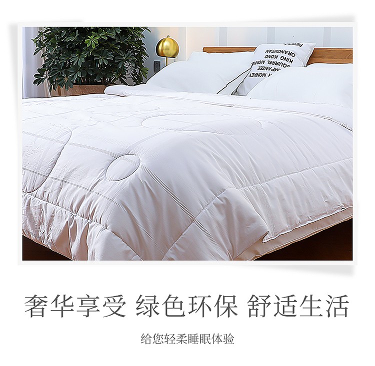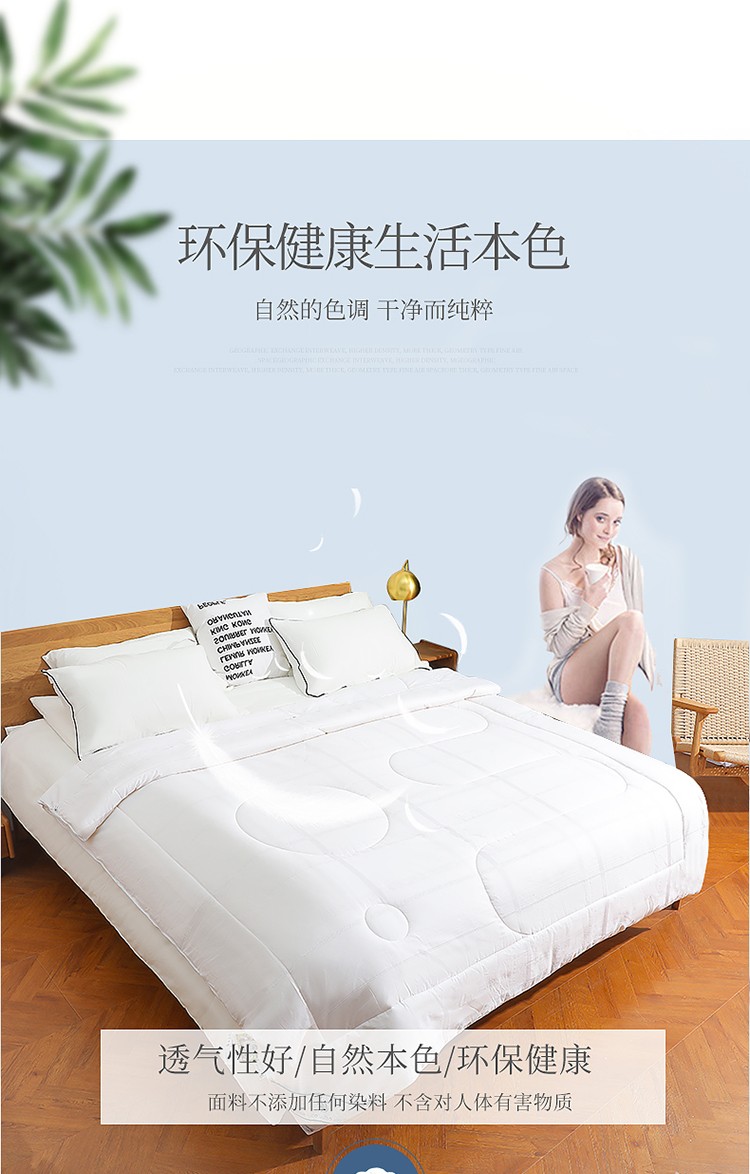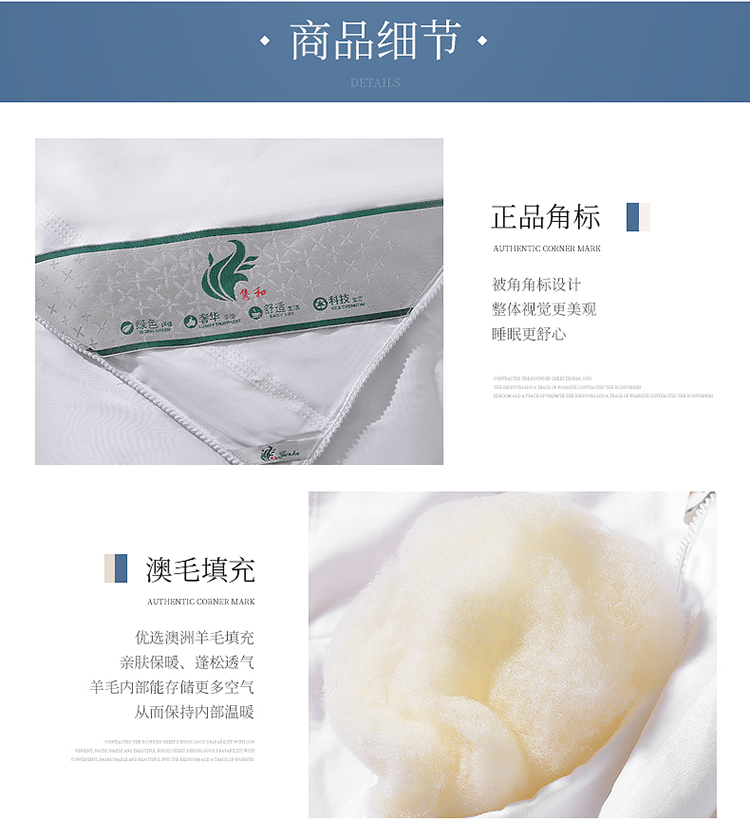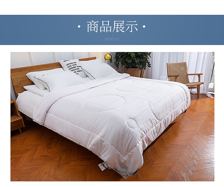 描述:进口澳毛填充,提花被套加花边工艺,看上去高档大气!保暖透气舒适