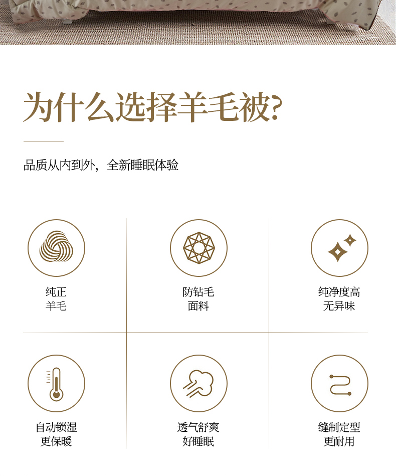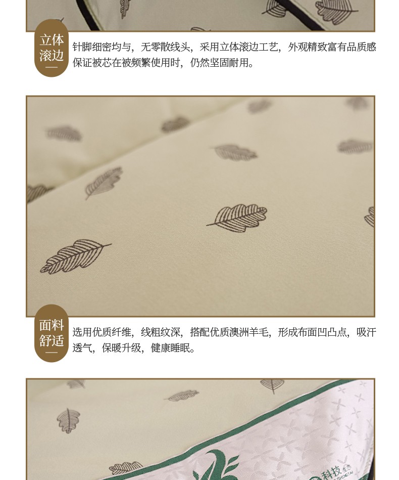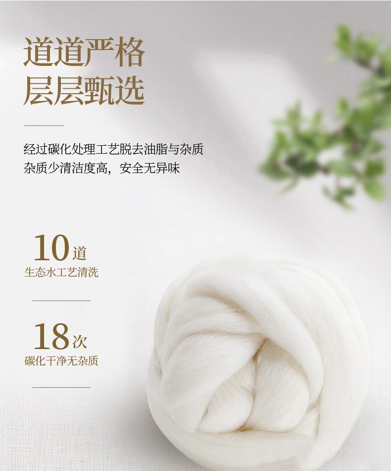 描述:挑选高品质羊毛填充,卷曲特性能够存储大量空气,提温不易流散更保暖 层层甄选,经过碳化处理工艺脱去油脂与杂质,杂质少清洁度高,安全无异味