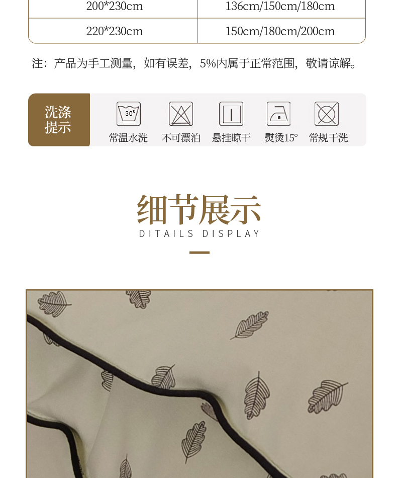 被芯尺寸:152*218CM,200*230CM,230*230CM