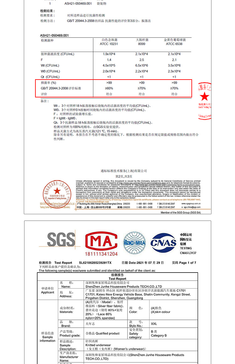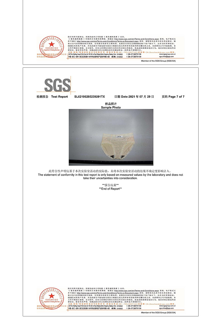 裆部面料:银离子纤维面料