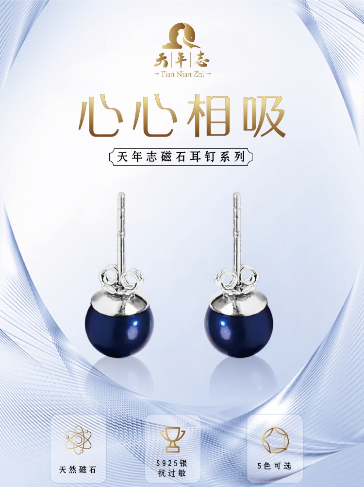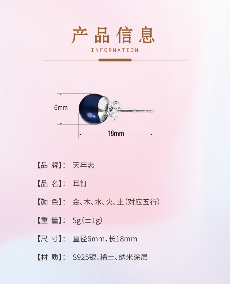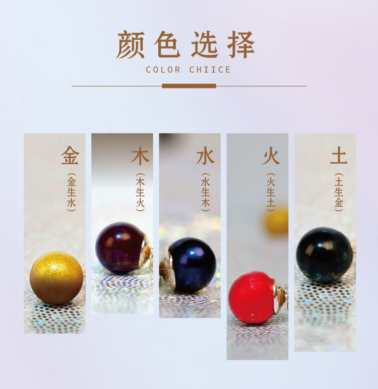 描述:珍贵的天然稀土磁石、s925银抗过敏材料,时尚大气的外观设计,对应金木水火土五行设计,任意选择5种颜色